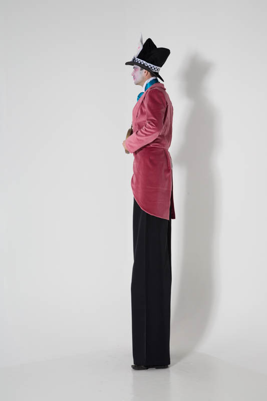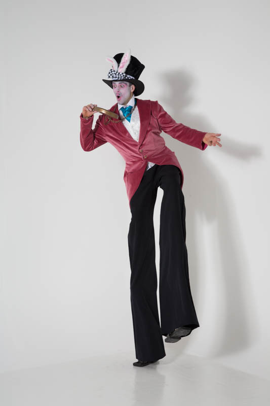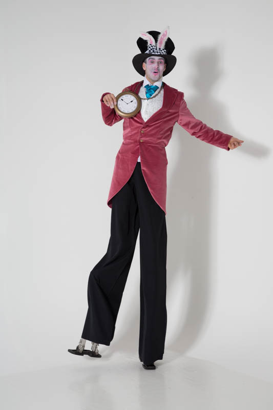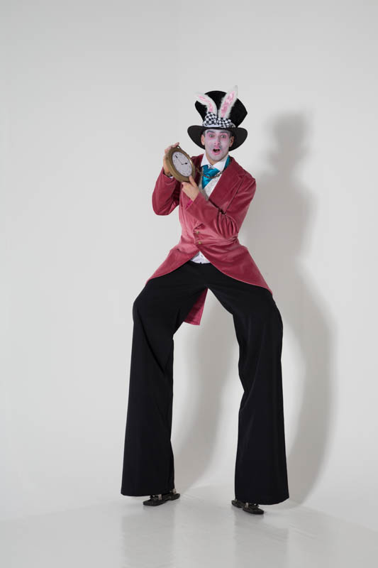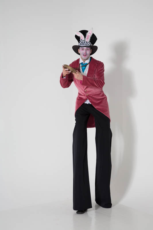This costume is ideal for birthday parties or themed events. The costume is versatile and will work at many corporate or private events. Please get in touch using the contact us page if you would like to enquire about booking me and making use of my Alice In Wonderland White Rabbit stilt costume.