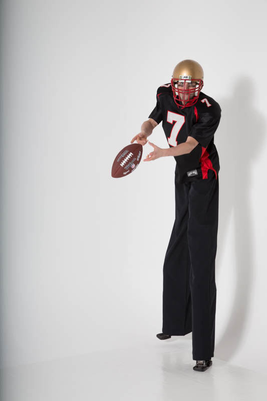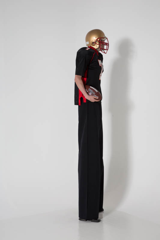 This costume is ideal for birthday parties or themed events. The costume is versatile and will work at many corporate or private events. Please get in touch using the contact us page if you would like to enquire about booking me and making use of my American Footballer stilt costume.