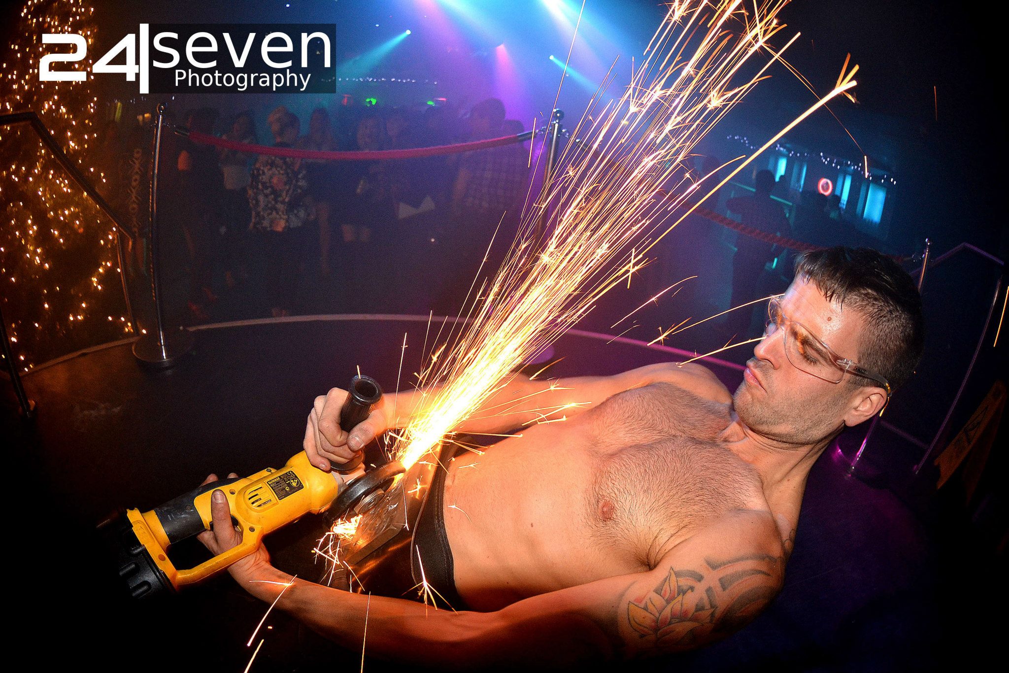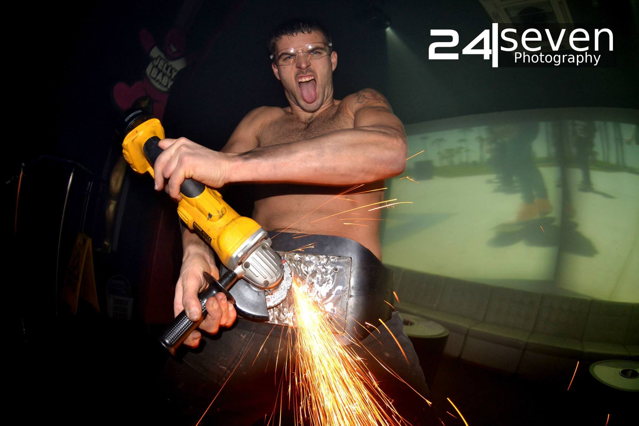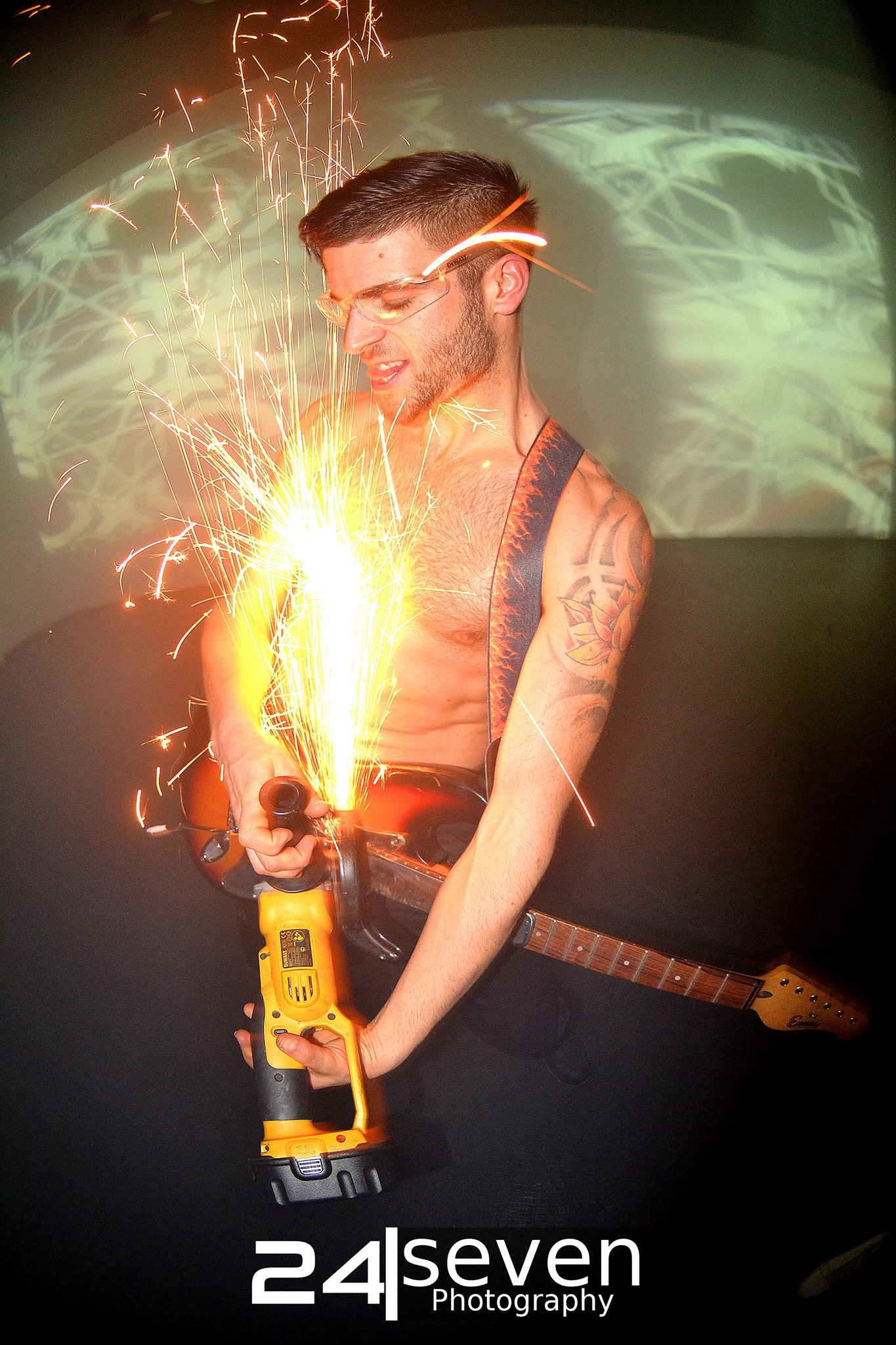 I have been angle grinding at events and parties for many years. I have a number of props that I use to keep the act fresh and relevant for all occasions.