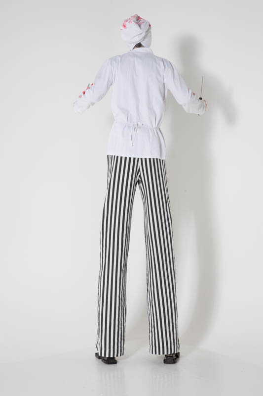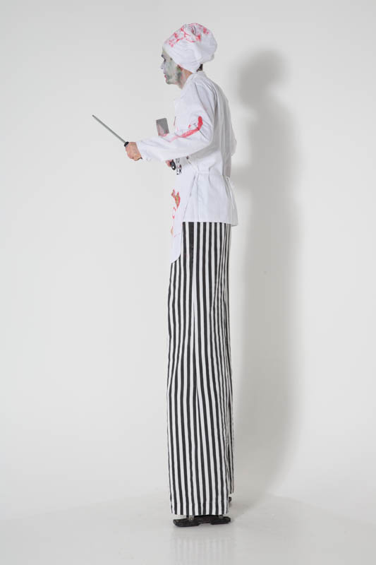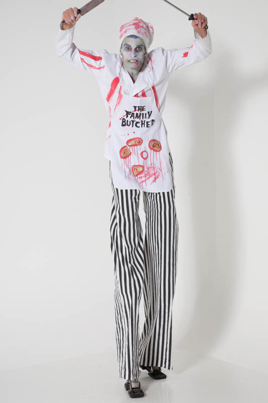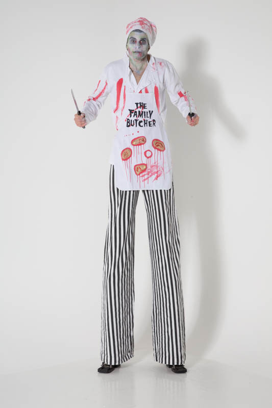This costume is ideal for birthday parties or themed events. The Family Butcher costume is versatile and will work at many corporate or private events. Please get in touch using the contact us page if you would like to enquire about booking me and making use of my stilt costumes.