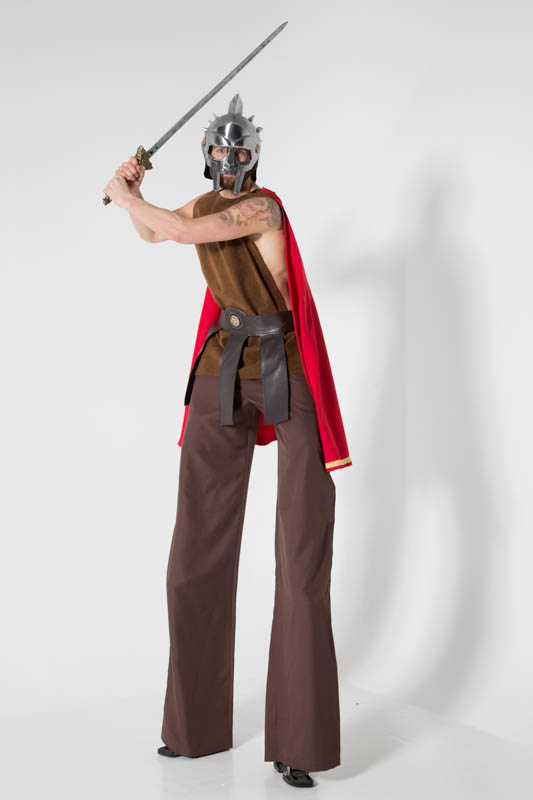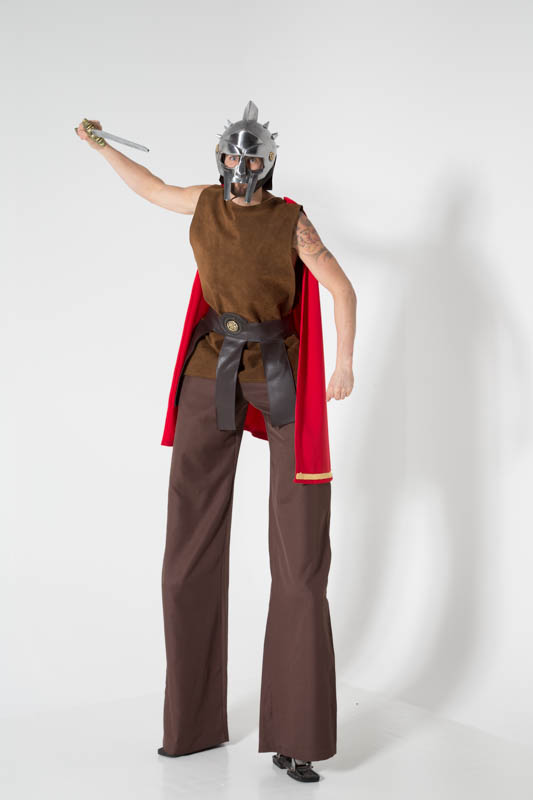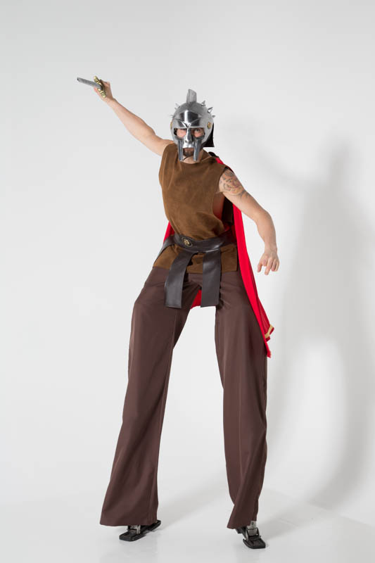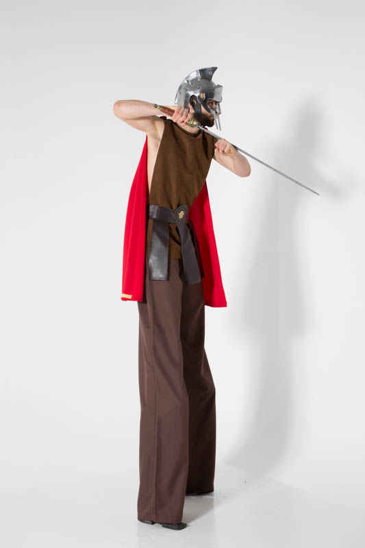 This costume is ideal for birthday parties or themed events. The costume is versatile and will work at many corporate or private events. Please get in touch using the contact us page if you would like to enquire about booking me and making use of my Roman Gladiator stilt costume.